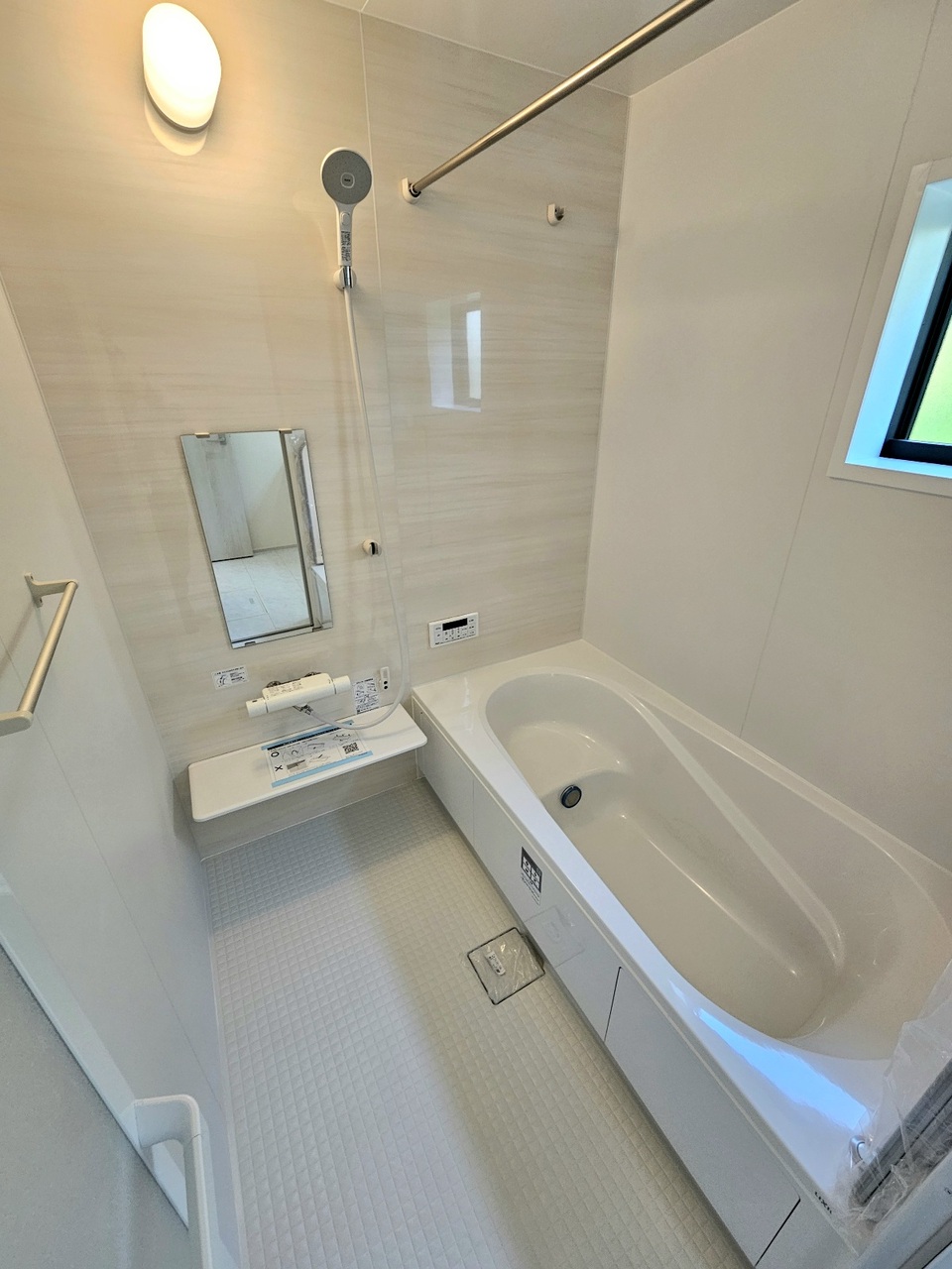 日の疲れを癒すユニットバス…柔らかな曲線で構成された半身浴も楽しめるバスタブが心地よさをもたらします。