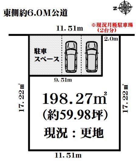 ・土地面積約60坪、前面道路はすっきり6.0公道です。