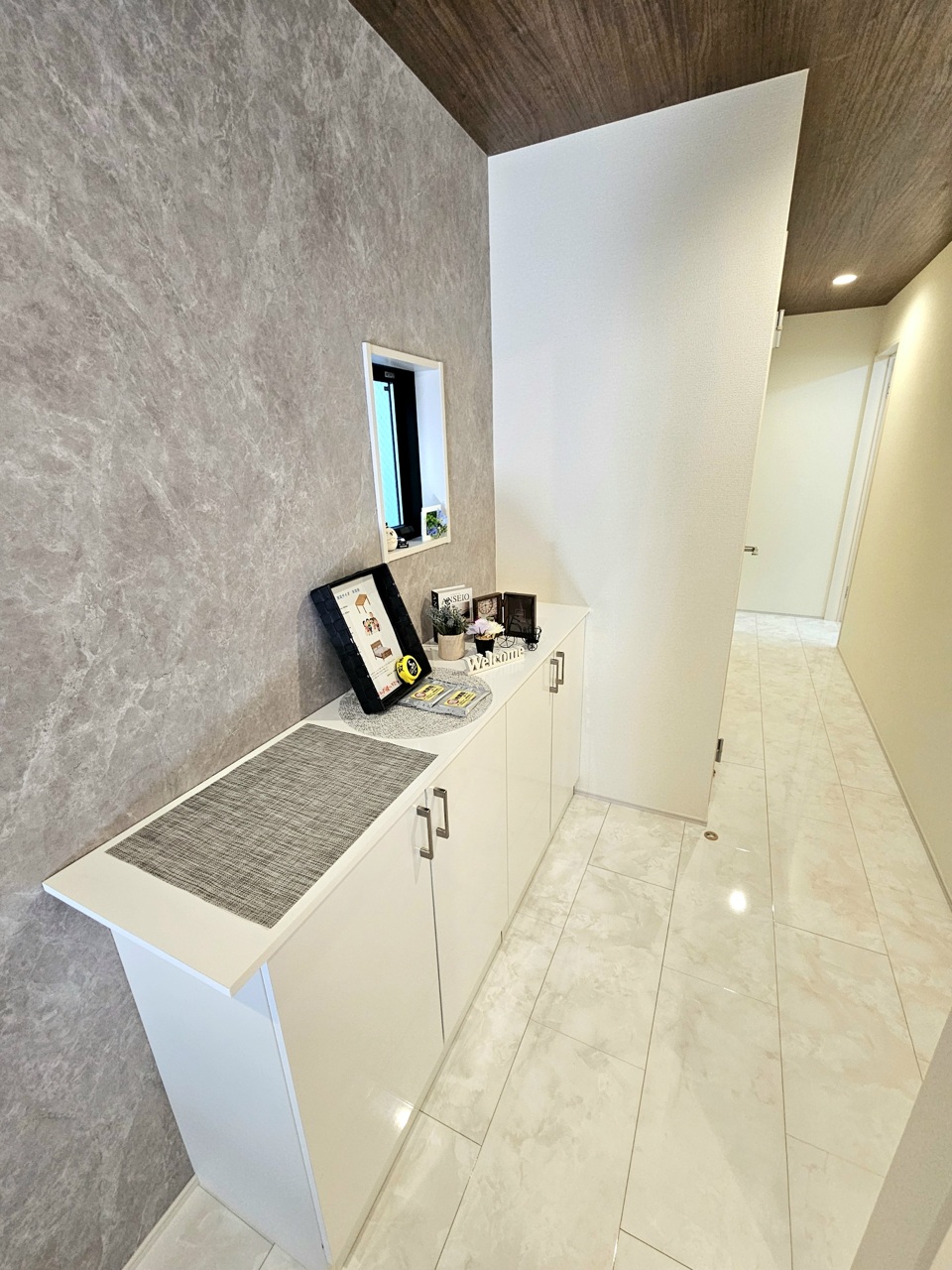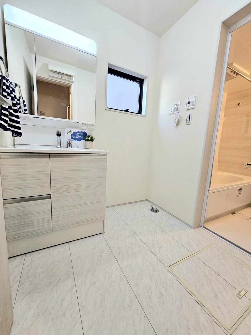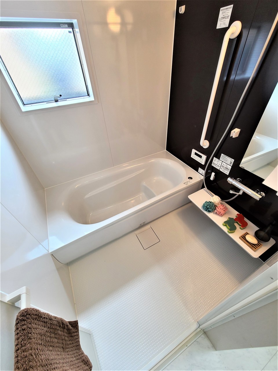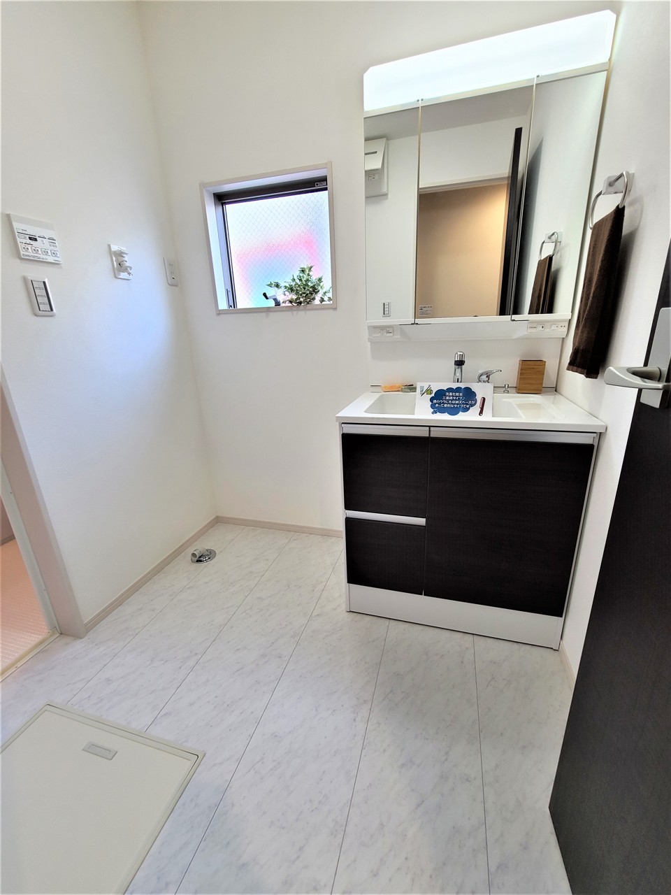- 建物は安心の長期優良住宅、土地は広々35坪でカースペースは並列2台駐車可能です。8m道路に面した立地は開放感満点です。同仕様の完成物件をご覧いただいて内装や設備はイメージしていただけると思います。