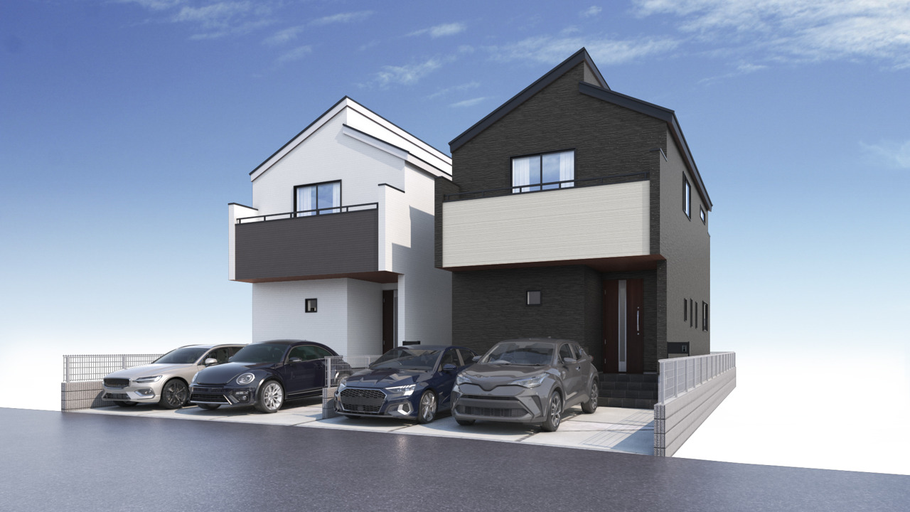 新発表の長期優良住宅全2棟です。土地は広々37坪超。ゆとりある敷地を生かしたお車並列2台駐車可能な大型4LDKです。