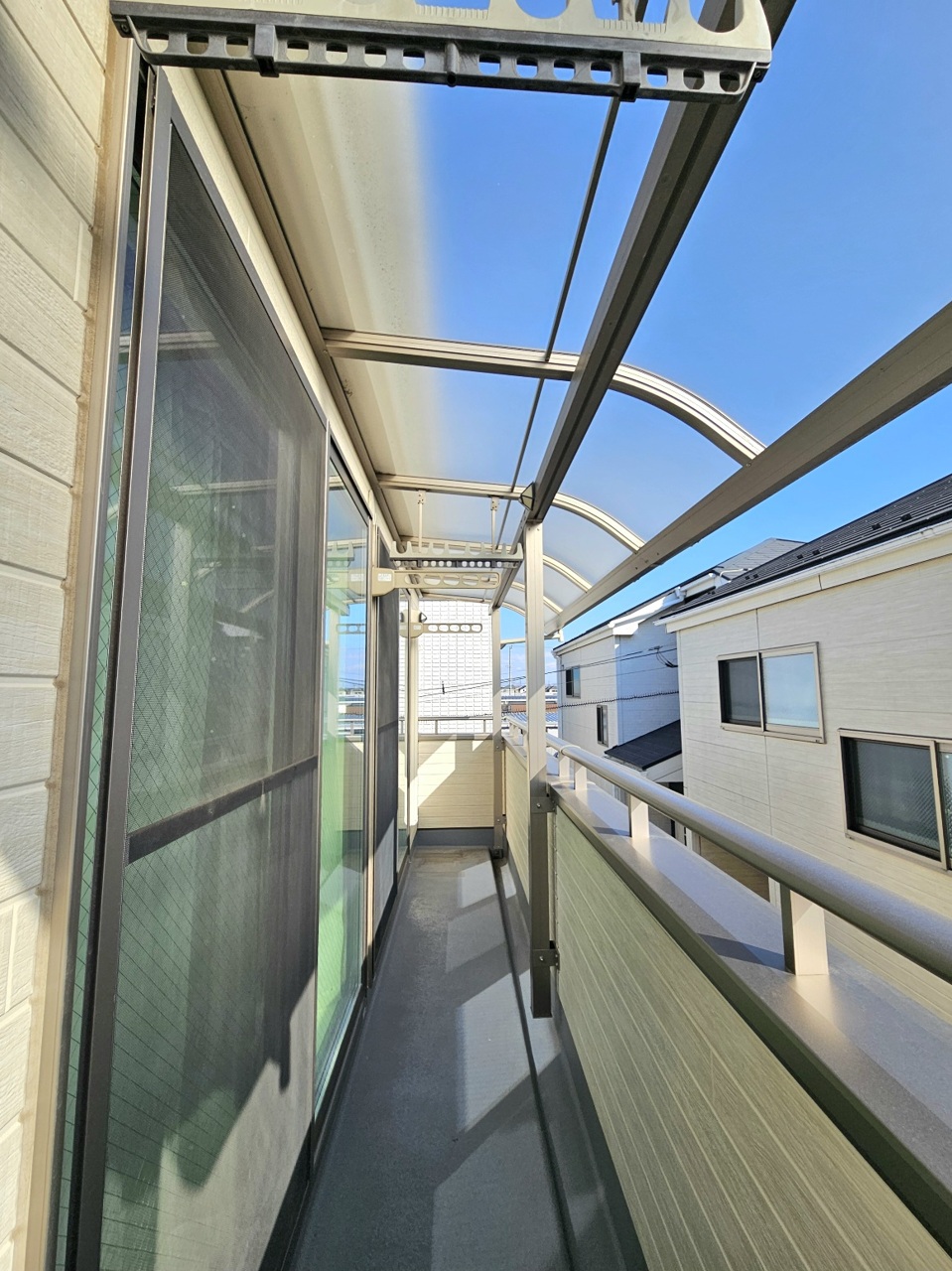 南バルコニーで毎日のお洗濯もラクラク快適!屋根が付いていますので、少しの雨なら気になりません。