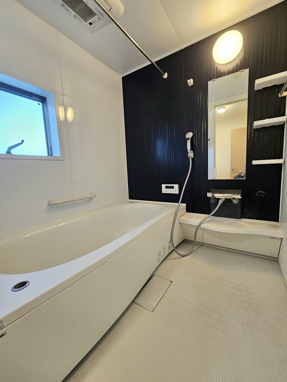 一日の疲れを癒すユニットバス…柔らかな曲線で構成された半身浴も楽しめるバスタブが心地よさをもたらしてくれます。