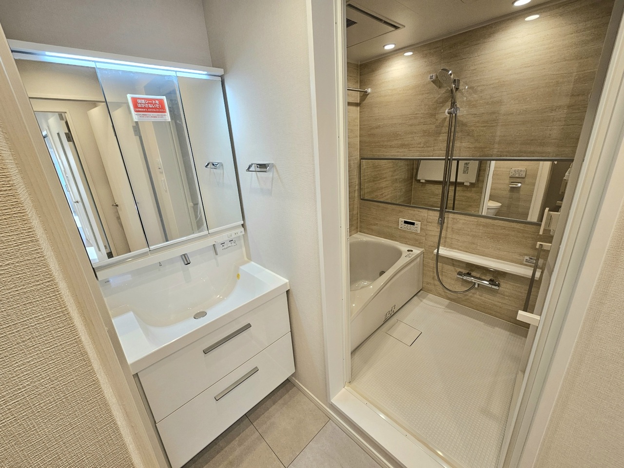 たっぷりの収納を設けたシャワー付洗面化粧台で快適な暮らしを実現。上質な洗面空間がゆとりの時間を演出してくれます。