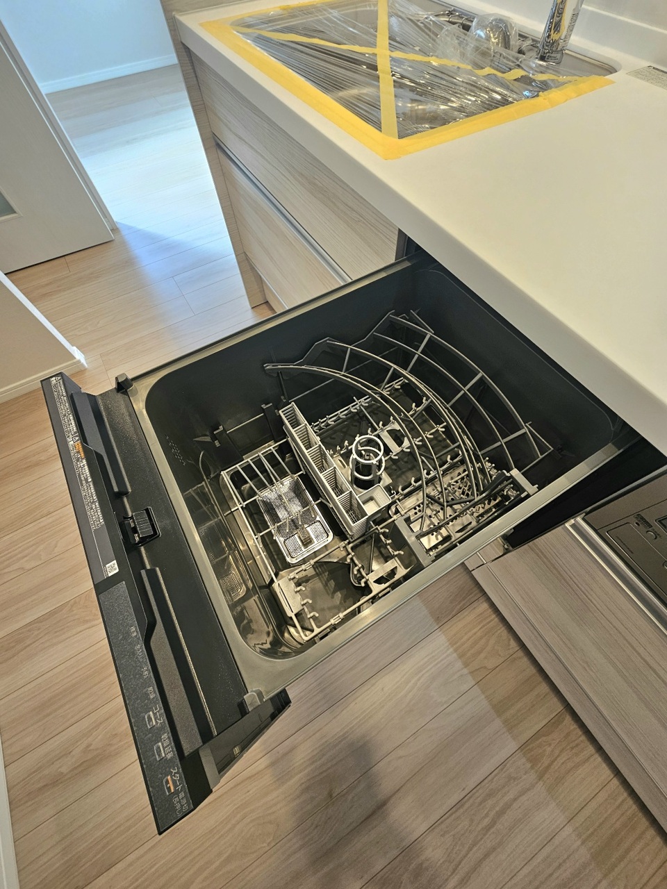 後片づけもラクラクな食器洗浄乾燥機付き。高温のお湯や高圧の水流を利用することにより汚れを効果的に落とすことができ、省エネかつ衛生的です。