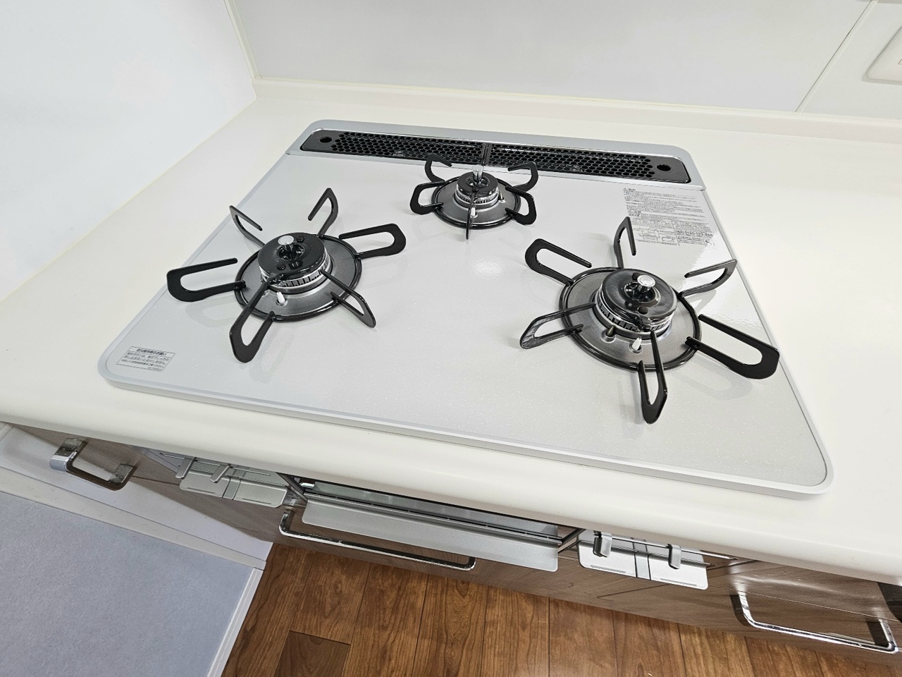 コンロはお手入れが簡単で見た目にも美しいガラストップタイプです。